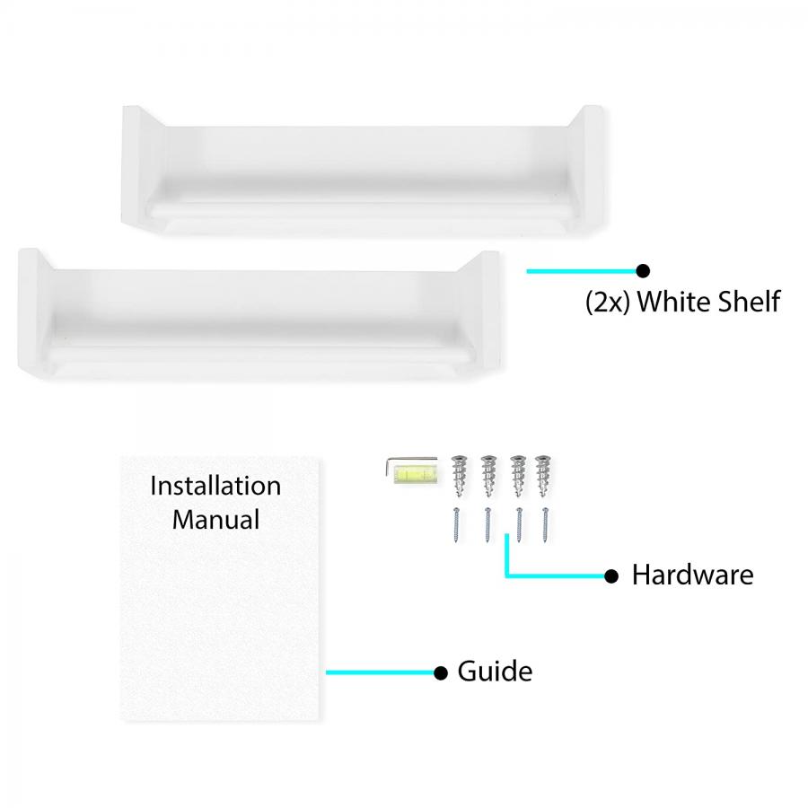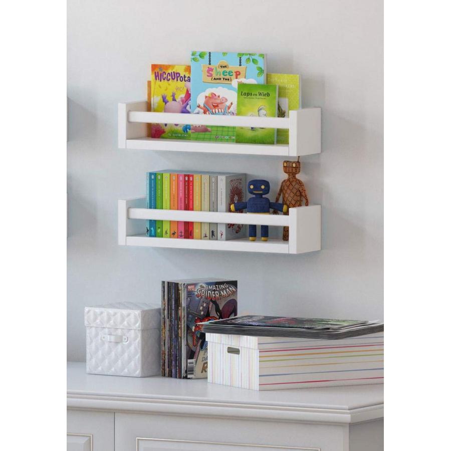- Set of 2 Nursery Room Wood Floating Wall Shelves White