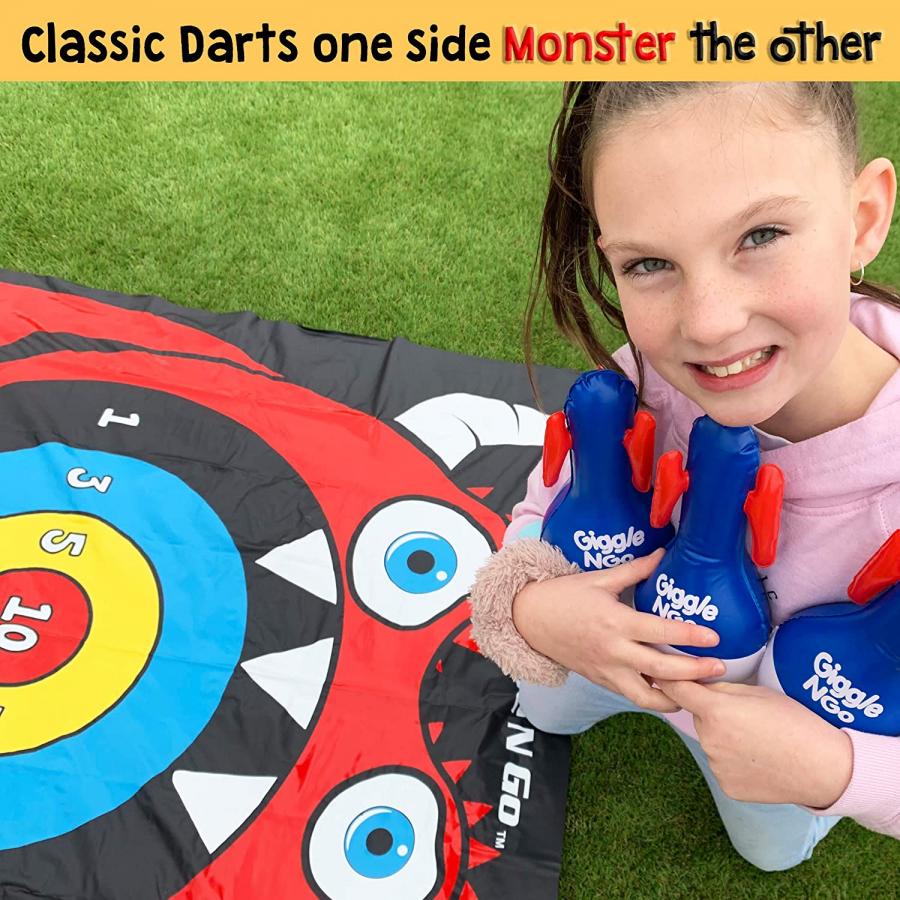 Our safe version of lawn darts is getting raving reviews, because we pride ourselves on the best family games for kids and adults. Indoor games and outdoor games for family to enjoy together. Inflatable toys like this can easily be set-up in minutes. Just open up the box, lay out the lawn darts mat, push some pegs into the corners to hold down if windy, blow up the 3 inflatable darts and you're good to go.